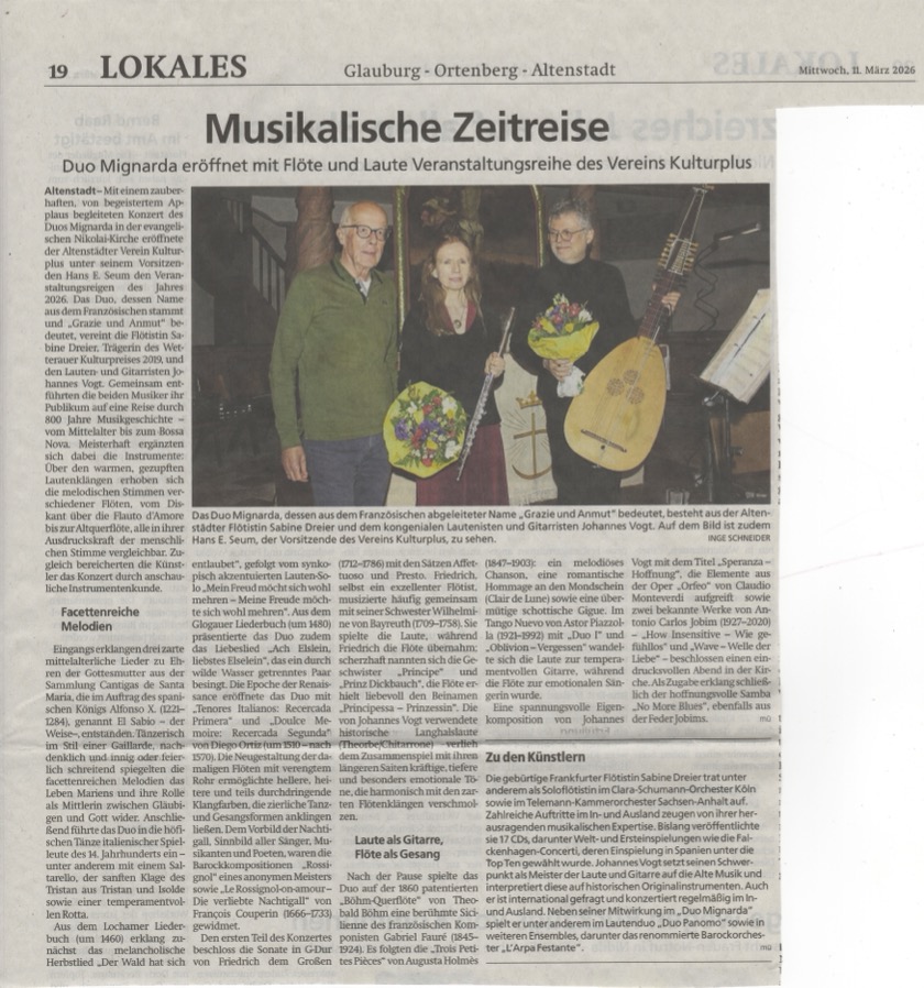 Offenbach Post 10.09.2020 Konzert für Traversflöte & Laute
